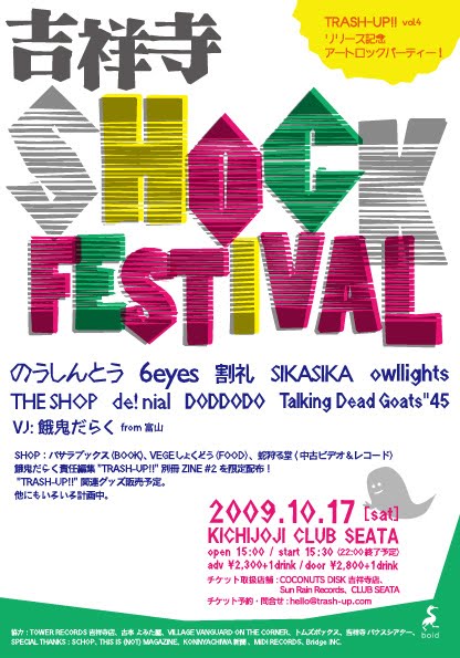のうしんとう / 6eyes / owllights / SIKASIKA / THE SHOP / de! nial / Talking Dead Goats"45 / DODDODO / 割礼